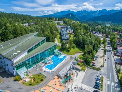 Basen zewnętrzny o powierzchni 390,8 m2 i temperaturze wody 28,5 oC. Z basenu zewnętrznego położonego na tarasie rozciąga się widok na Tatry Zachodnie i Giewont. Położony wewnątrz budynku basen rekreacyjny stanowi idealne miejsce wypoczyku dla całych rodzin - wyposażony jest w liczne urządzenie do hydromasażu: bicze wodne, kaskady oraz leżanki podwodne.